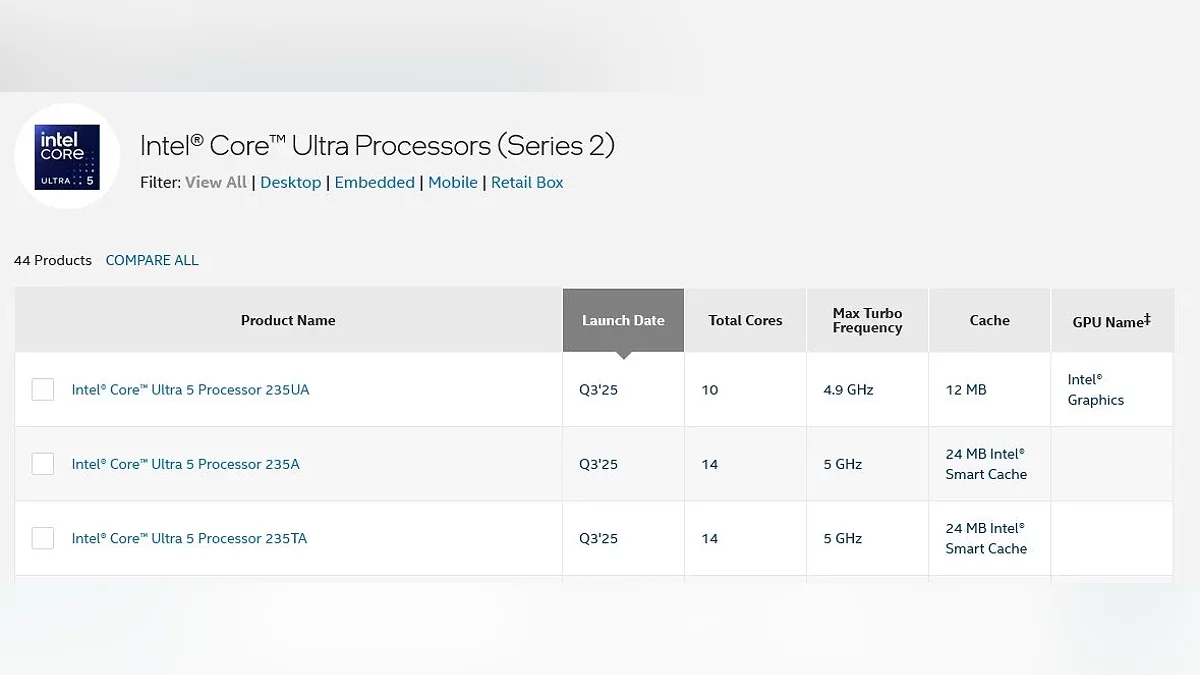 Компанія Intel поповнила асортимент процесорів Arrow Lake трьома новими моделями під брендом Core Ultra 5, орієнтованими на зниження енергоспоживання. Інформація про чіпи 235A, 235TA та 235UA з'явилася в офіційних специфікаціях без гучних анонсів.