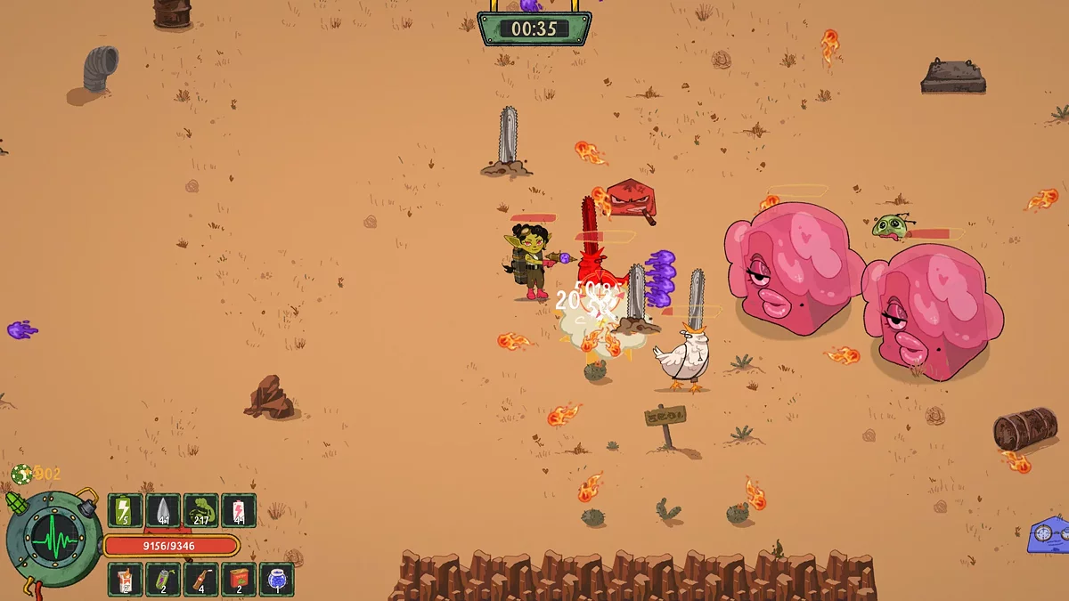 Nora and Frank — екшен-роґалик з видом зверху про гобліншу-інженера Нору та її друга Френка, живого чемодана-міміка. Гравці повинні знищувати орди ворогів у постапокаліптичному світі, заробляти фішки та обмінювати їх на різні посилення. Сторінка в Steam.