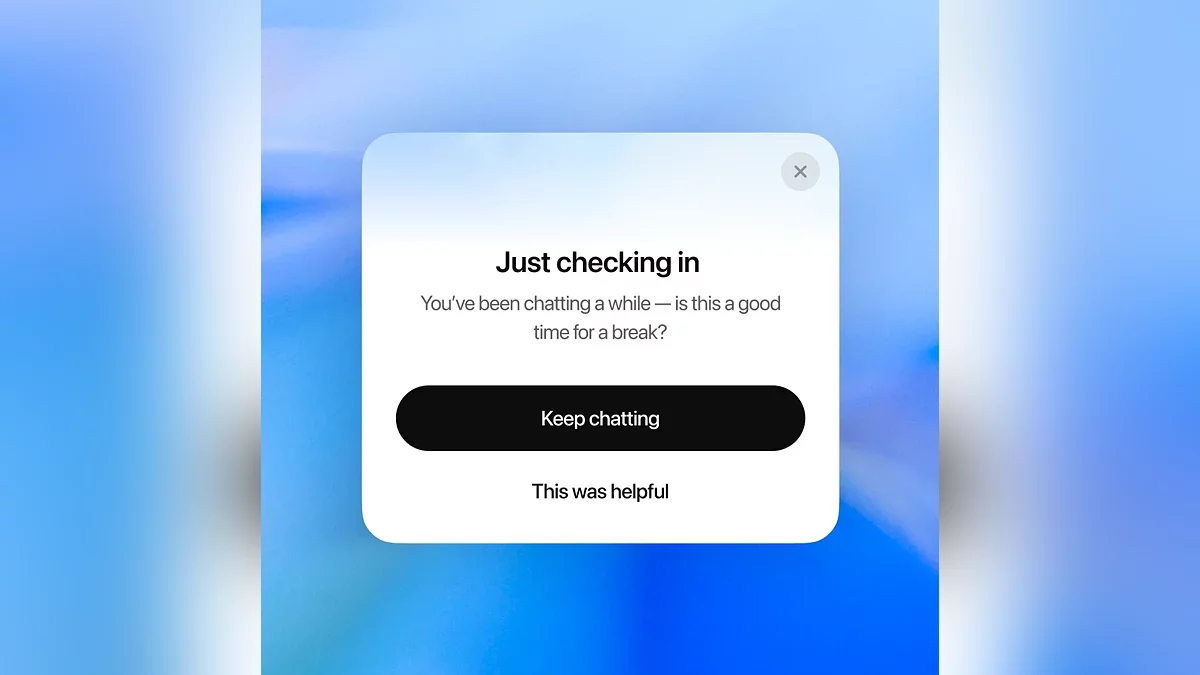 По-перше, ChatGPT почне активніше нагадувати про перерви. Якщо діалог з ботом затягується, система запропонує користувачеві зробити перерву. Це не жорстке відключення, а м'яке повідомлення — рішення продовжити завжди залишається за людиною. Розробники пояснюють: мета ChatGPT — допомогти вирішити задачу або отримати інформацію, а не утримувати увагу будь-якою ціною.