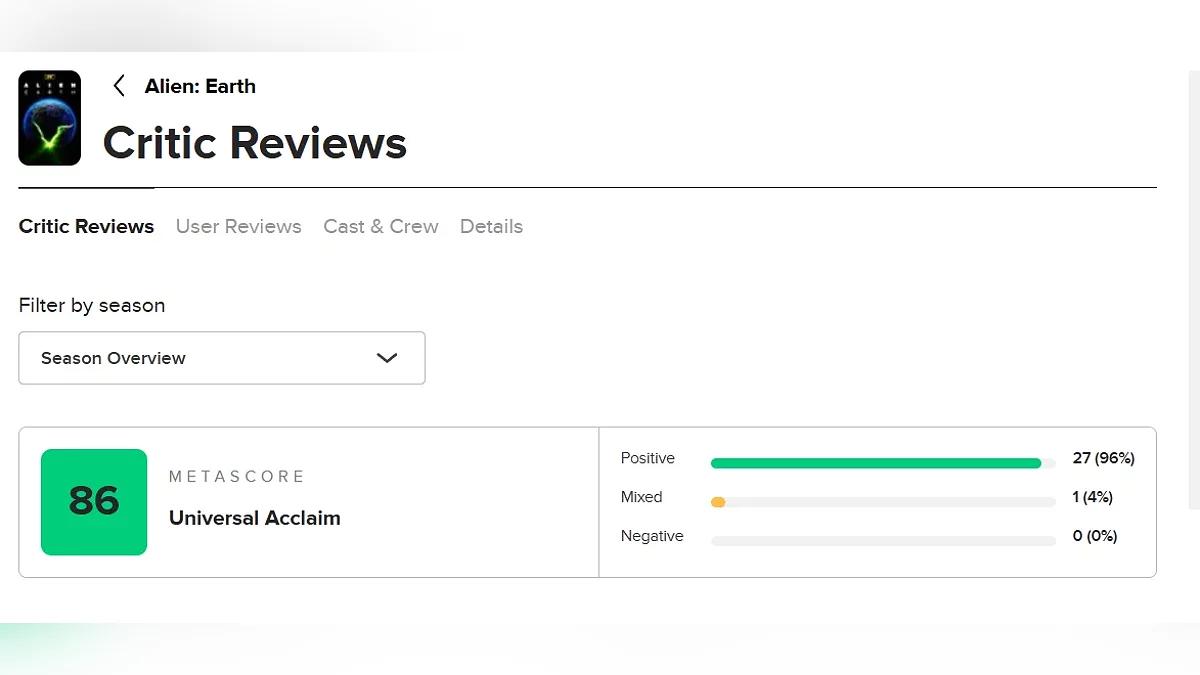 Появилися оцінки серіалу «Чужий: Земля», дія якого розгортається за два роки до початку подій оригінального фільму 1979 року. На Metacritic проект отримав 86 балів від критиків, а на Rotten Tomatoes рейтинг становить 94%.