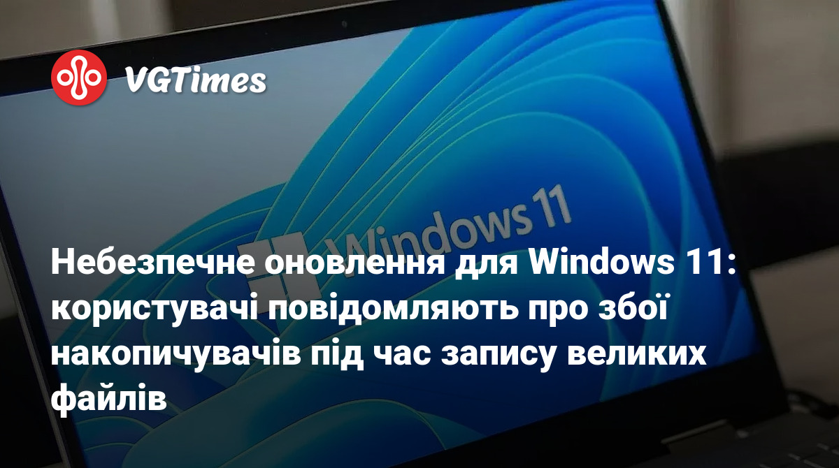 Небезпечне оновлення для Windows 11: користувачі повідомляють про збої накопичувачів під час запису великих файлів