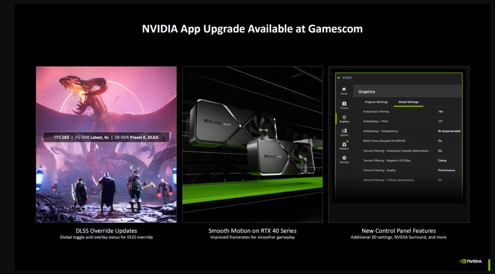 Перша хвиля оновлення NVIDIA App з підтримкою SMF для RTX 4000 та новими функціями стартує 19 серпня для учасників програми бета-тестування. Широкий реліз заплановано на 26 серпня. Нововведення приурочені до початку виставки Gamescom 2025, де можливо будуть розкриті додаткові подробиці.