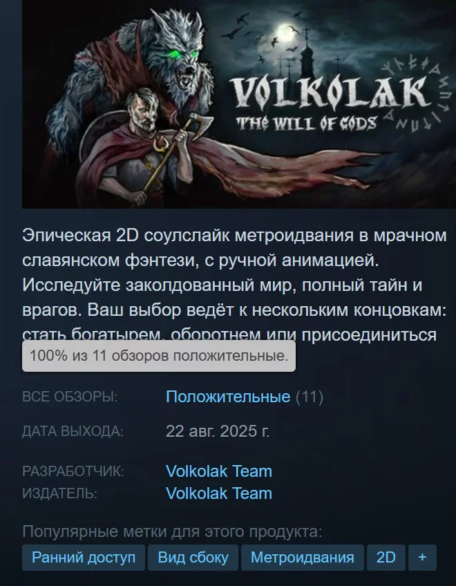 В ранньому доступі Steam відбувся вихід 2D-метроидванії у слов'янському сеттінгу Volkolak: The Will of Gods. До 29 серпня проект можна придбати зі знижкою 20%. Є безкоштовна демоверсія.