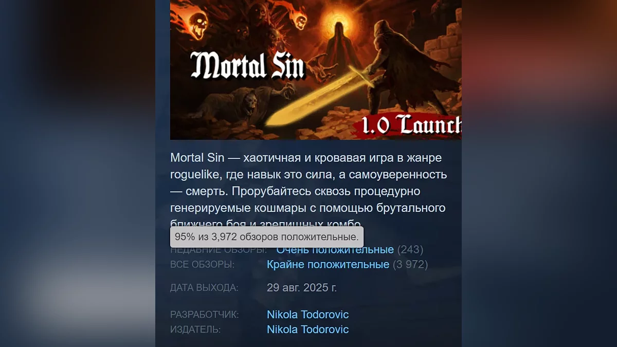 Брутальний екшен-роґалик Mortal Sin отримав оновлення версії 1.0 і покинув ранній доступ Steam. На честь цього події гра отримала знижку 20%, яка буде діяти до 12 вересня.