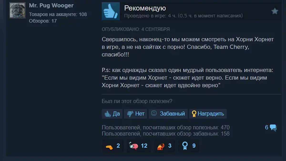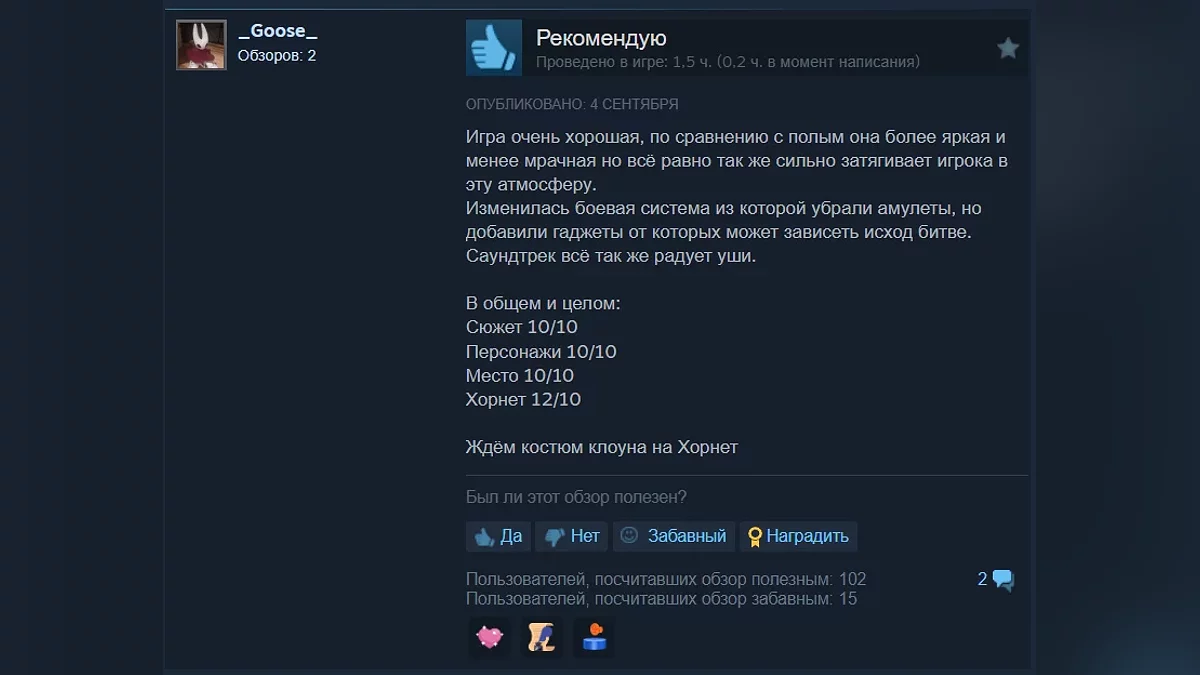 У відгуках більшість геймерів радіють і дякують студії Team Cherry за те, що вона все ж таки стримала обіцянку і випустила гру такою, якою її хотіли бачити фанати.