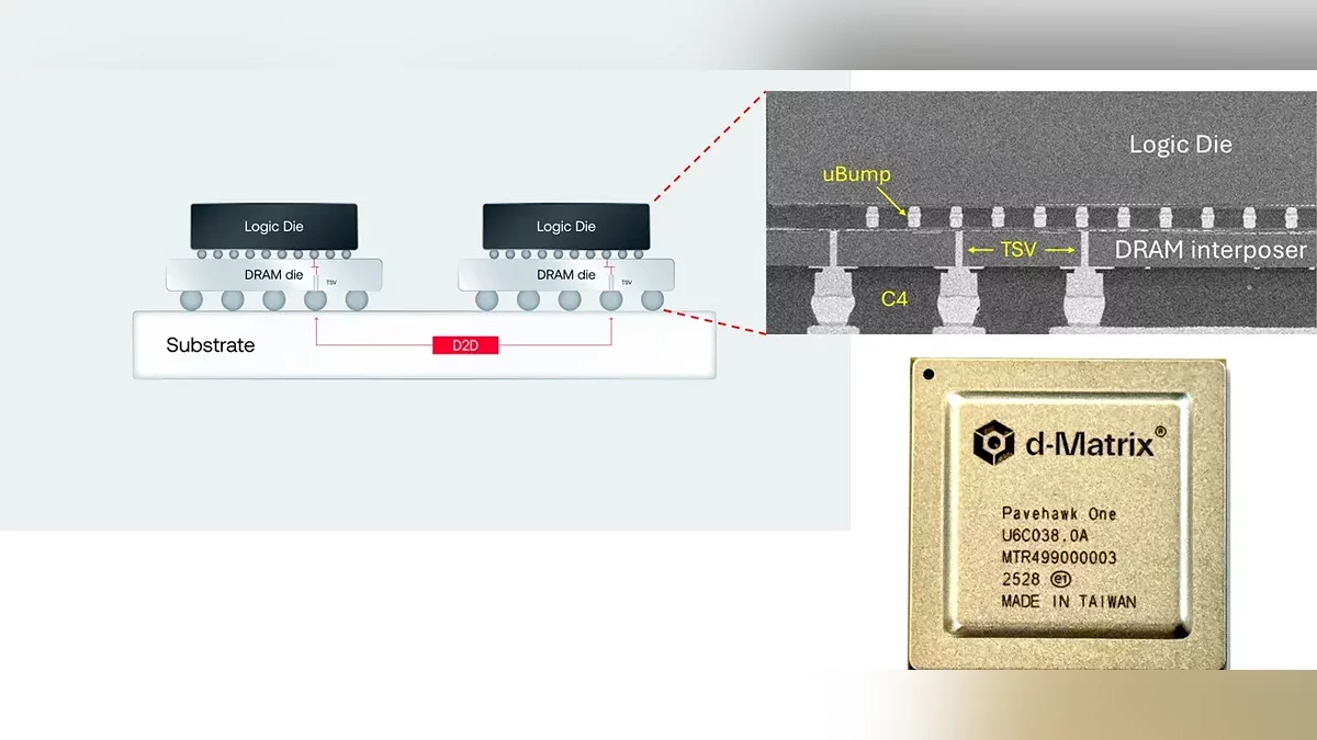 Новий підхід компанії полягає в принципово іншій компоновці чіпів. Технологія, що отримала назву Digital In-Memory Compute (DIMC), передбачає вертикальну збірку (3D-стекування). На кристали пам'яті LPDDR5 розміщуються спеціальні обчислювальні чіплети, які з'єднані через інтерпозер, що дозволяє виконувати обчислення прямо всередині масиву пам'яті, значно скорочуючи затримки та енергозатрати на переміщення даних.