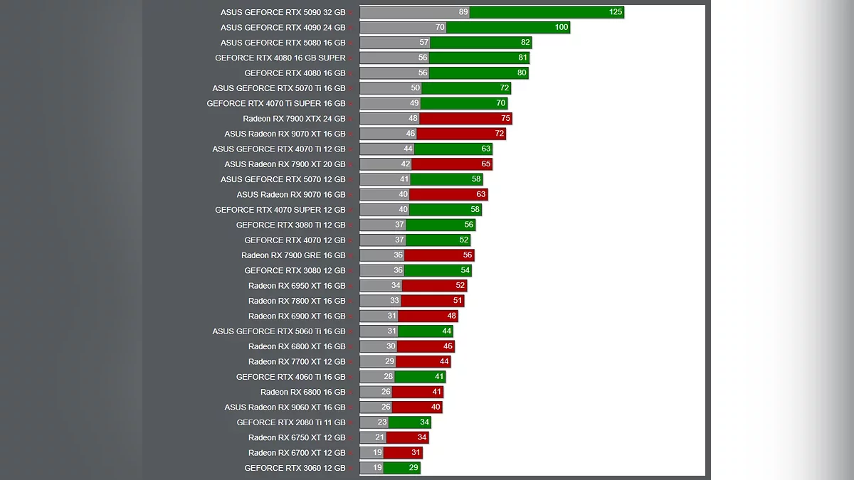 - AMD Radeon RX 9070 XT (16 Гб) — 105 FPS;