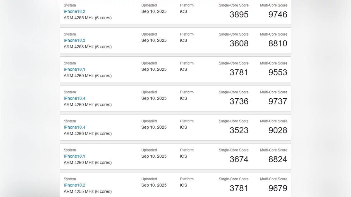 Окрему увагу привернув iPhone Air, який працює на полегшеній версії процесора A19 Pro з одним відключеним графічним ядром і оснащений 12 ГБ оперативної пам'яті. Результати тестів моделі виявилися на рівні базового iPhone 17, а в графіці — трохи його перевершили.
