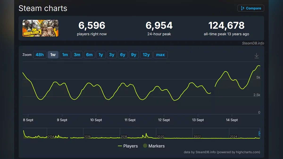 Borderlands 4 показала в Steam найкращий старт у серії. Попередній рекорд належав Borderlands 2, в якій у піку онлайну перебували 124678 осіб. Третя частина стартувала значно скромніше (93820 осіб), однак варто зазначити, що вона вийшла в сервісі Valve з великою затримкою, оскільки була тимчасовим ексклюзивом Epic Games Store. Що стосується Tiny Tina's Wonderlands, спін-оффа, випущеного після Borderlands 3, то він показав вкрай слабкий результат (15021 особа).