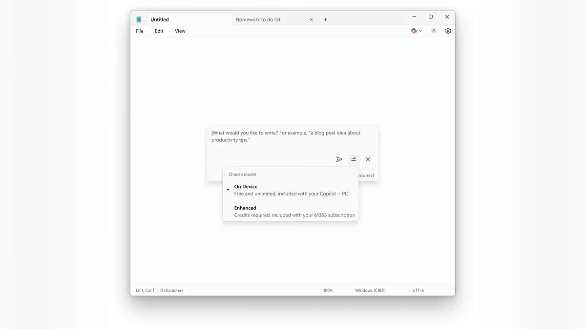 ШІ в Блокноті Windows 11 запрацює без інтернету та підписки