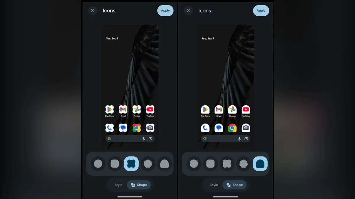Одне з найпомітніших нововведень — повернення в налаштування можливості змінювати форму значків додатків. Опція, яку багато хто чекав, знову доступна в меню «Обої та стиль», також там можна вибрати один з п’яти варіантів відображення іконок, включаючи класичні круглі іконки. Вибрана форма іконок буде застосовуватися до всіх ярликів на робочому столі, а також змінює зовнішній вигляд папок.