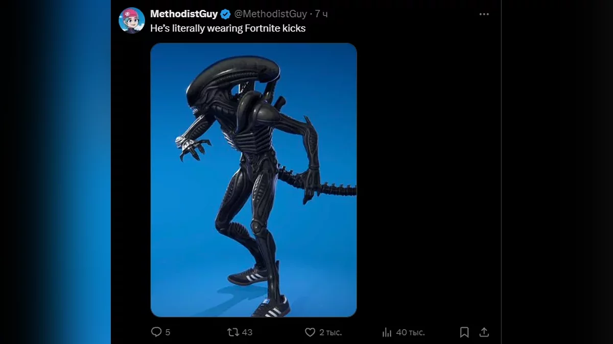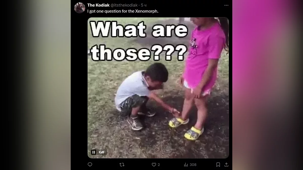 В соцмережах завірусився уривок зі знімального майданчика серіалу Hulu «Чужий: Земля» з актором, який виконав роль ксеноморфа. Виявилося, що за кадром Чужий носив легендарні «адидаси», що спровокувало потік жартів.