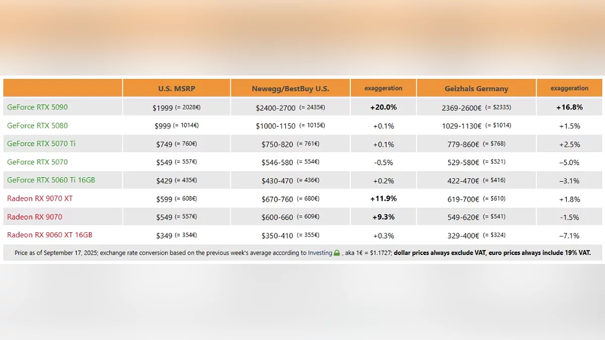 При цьому ситуація залишається неоднорідною, адже флагманська RTX 5090 все ще коштує значно дорожче своєї рекомендованої ціни в $1 999, досягаючи $2 400-$2 700 (близько 200 000 — 226 000 гривень). Для порівняння, відеокарти AMD серії RX 9000 в США також демонструють ціни вище рекомендованих, тоді як в Європі їх вартість вже близька до нормальної.