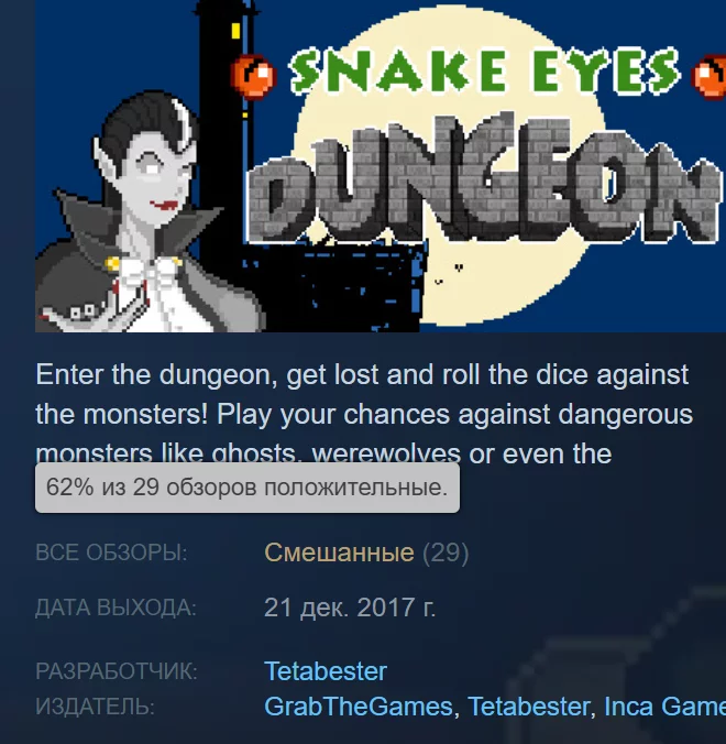 В сервісі Steam стартувала безкоштовна роздача рогалика Snake Eyes Dungeon, який до акції коштував 200 рублів (5 доларів). Забрати гру в свою бібліотеку можна до 3 жовтня 20:00 (МСК).
