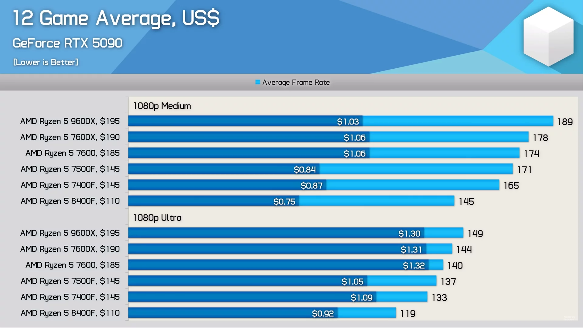 Однак невелика доплата до 7400F або 7500F виглядає більш розумним вкладенням, адже ці процесори пропонують повноцінну продуктивність і більш широкі можливості. Таким чином, для геймерів, які обирають процесор сьогодні, найбільш збалансованими варіантами виглядають моделі 7400F та 7500F. Новачок 9600X, хоч і швидший, але не демонструє такого ж значного приросту в співвідношенні «ціна/якість».