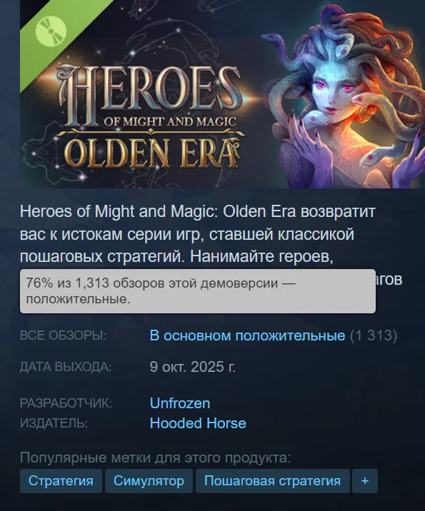 9 жовтня в Steam вийшла демоверсія покрокової стратегії Heroes of Might and Magic: Olden Era. Гравці вже оцінили демо — вона отримала 76% позитивних відгуків у сервісі Valve.