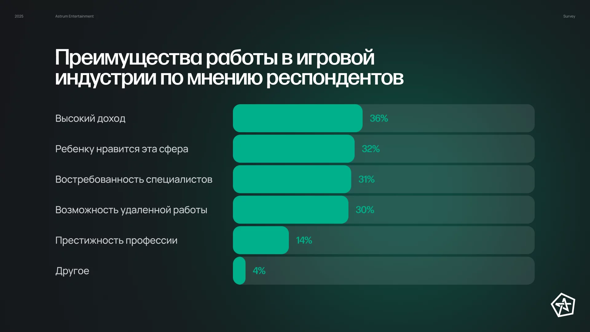 Компанія Astrum Entertainment провела масштабне опитування серед 1500 батьків підлітків, щоб з'ясувати, як вони сприймають ігрову індустрію як кар'єрний шлях. Результати показали цікаву суперечність: більшість батьків впевнені, що в геймдеві можна добре заробляти, але при цьому рідко говорять про це з дітьми.