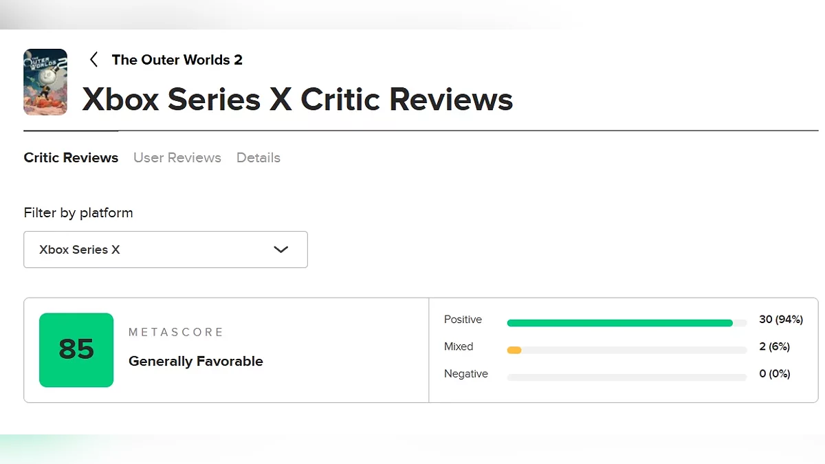 Уже на наступному тижні (29 жовтня) відбудеться реліз нового рольового екшена від Obsidian Entertainment під назвою The Outer Worlds 2. В мережі вже з'явилися перші оцінки проекту. Наприклад, на Metacritic рейтинг зараз становить 85 балів.