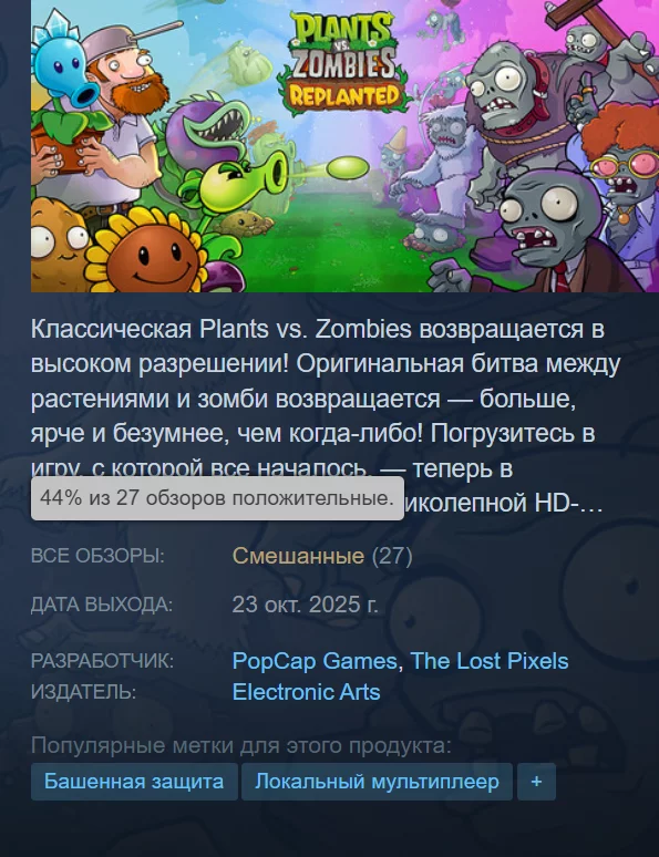На PC та консолях відбувся реліз Plants vs. Zombies: Replanted, оновленої версії Plants vs. Zombies. Гра доступна на PC, Xbox One, Xbox Series X/S, PS4, PS5, Nintendo Switch та Nintendo Switch 2.