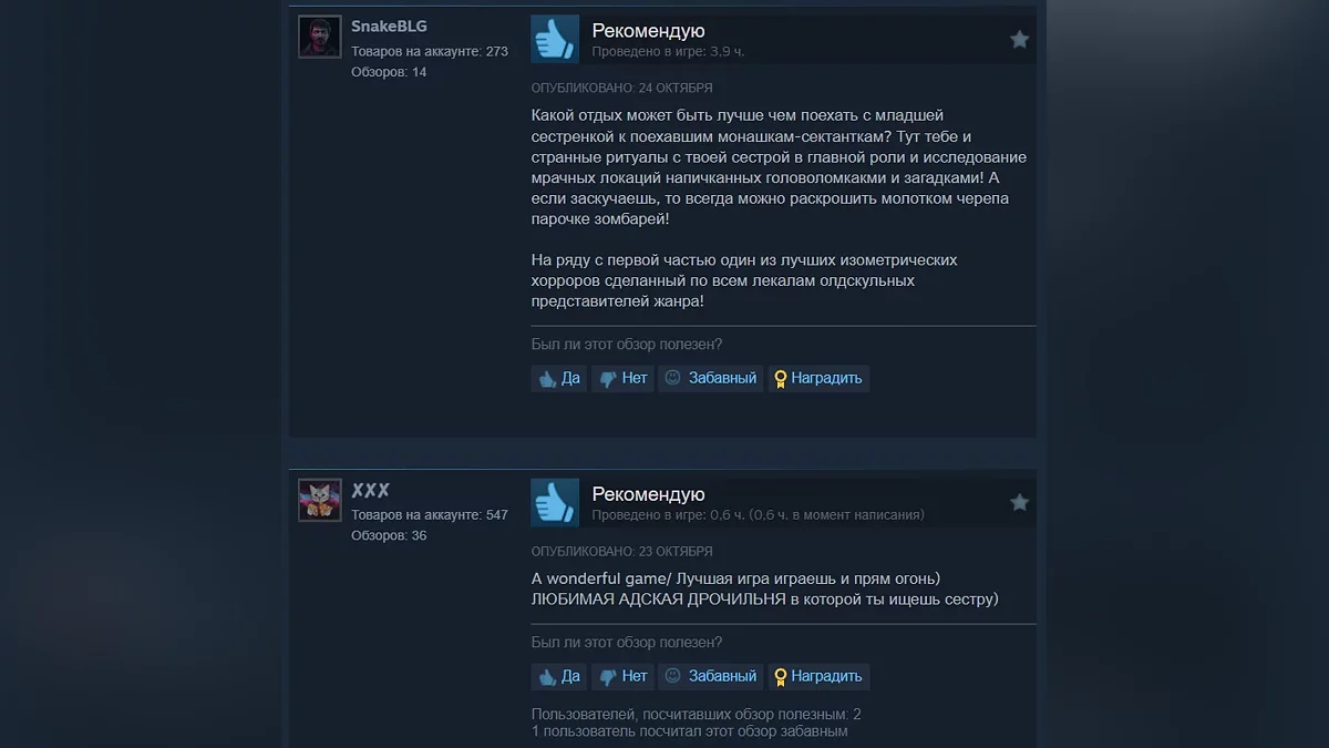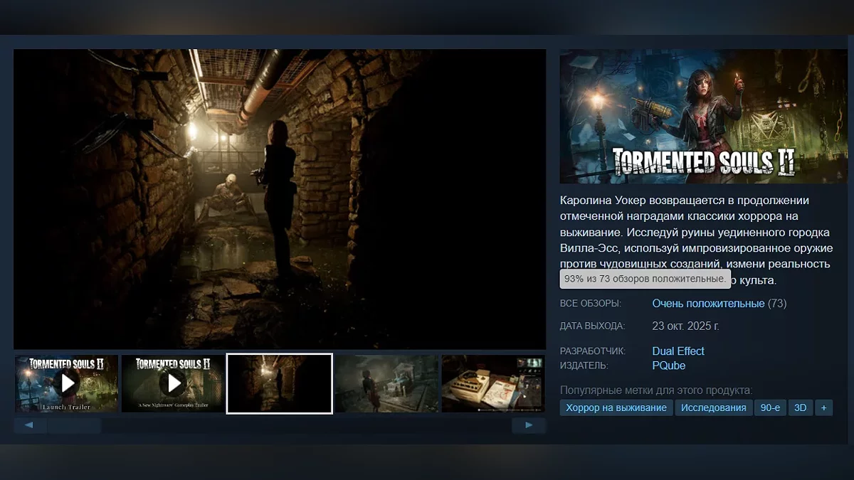 Хоррор на виживання Tormented Souls 2 отримав перші відгуки від геймерів у Steam — на момент написання новини рейтинг гри становить 93%. Більшість гравців хвалять проект за олдскульну атмосферу та цікаві головоломки.