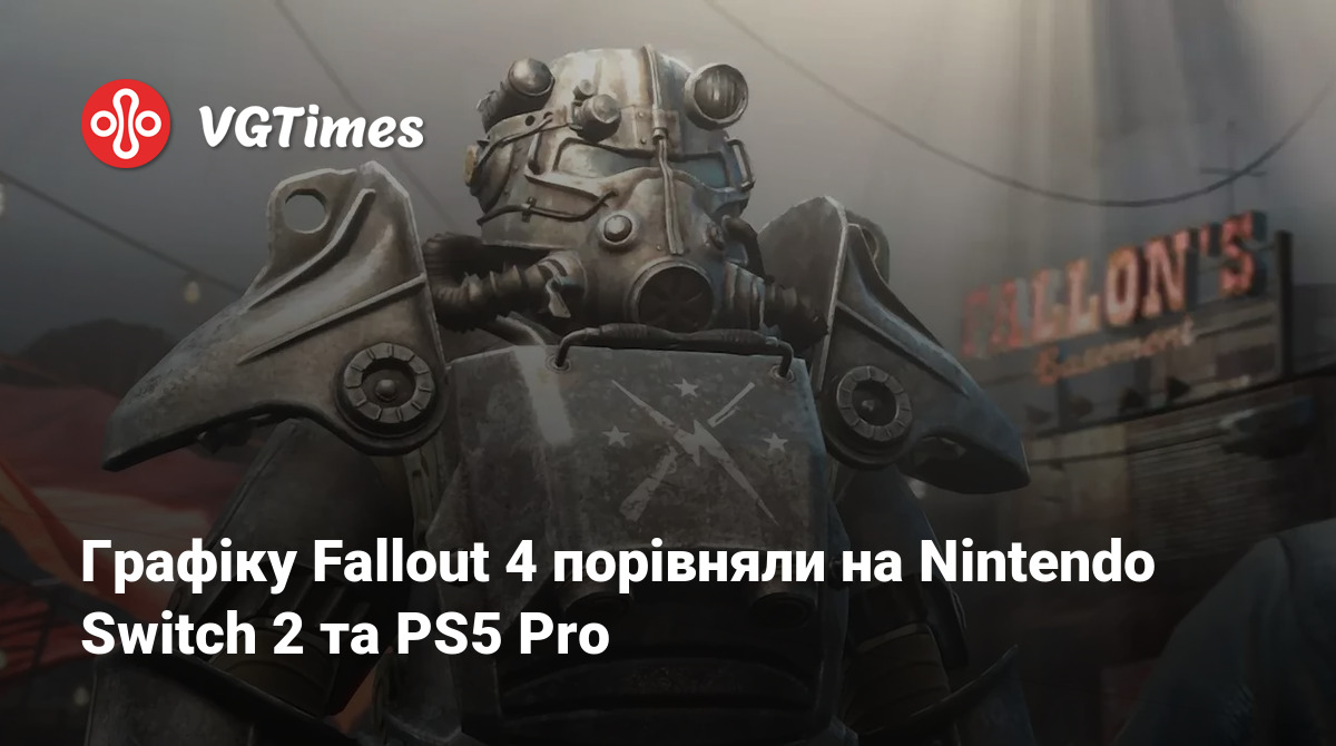 Ютубер з ніком Cycu1 опублікував відео зі порівнянням Fallout 4 на Nintendo Switch 2 та PS5 Pro. Кадри версії для гібридної консолі були взяті з офіційного тизера.