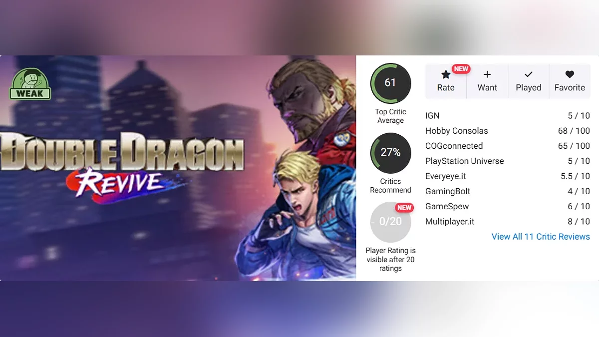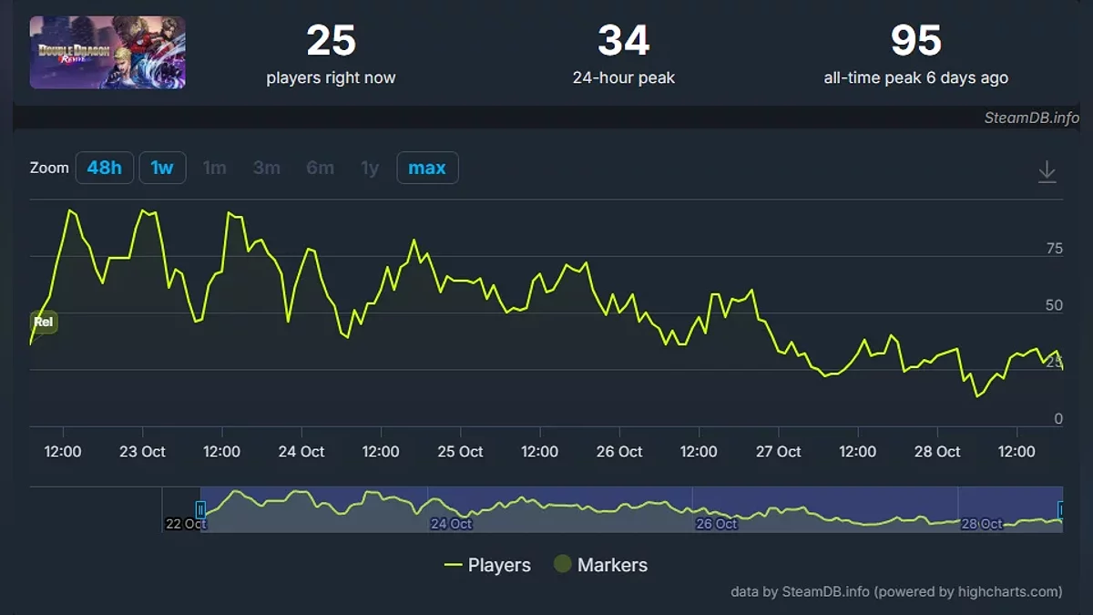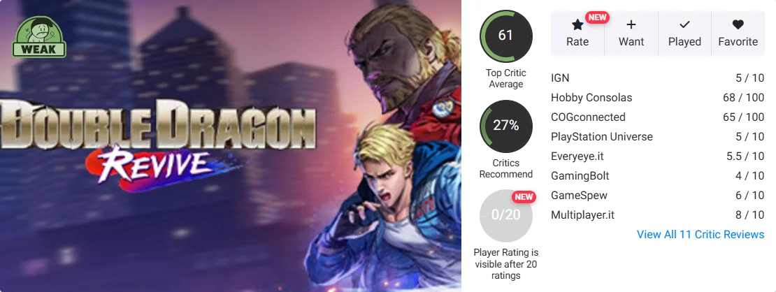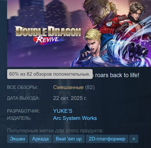 Double Dragon Revive, нова частина культової серії бітемапів, провалилася на PC. Гра зібрала всього 95 людей у піку онлайну в Steam. Крім того, проект отримав 60% позитивних відгуків.
