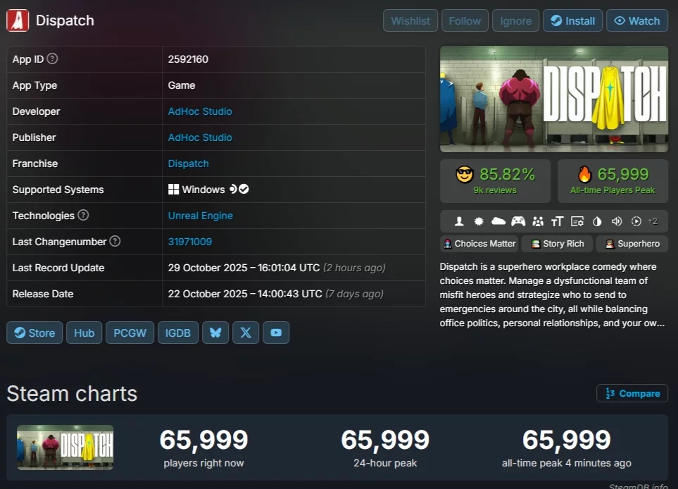 Дебютна гра студії AdHoc Studio переживає справжній вибух популярності. Після релізу третього і четвертого епізодів на PC піковий онлайн Dispatch в Steam зріс більш ніж у п'ять разів — з 12 тисяч до 66 тисяч гравців одночасно.
