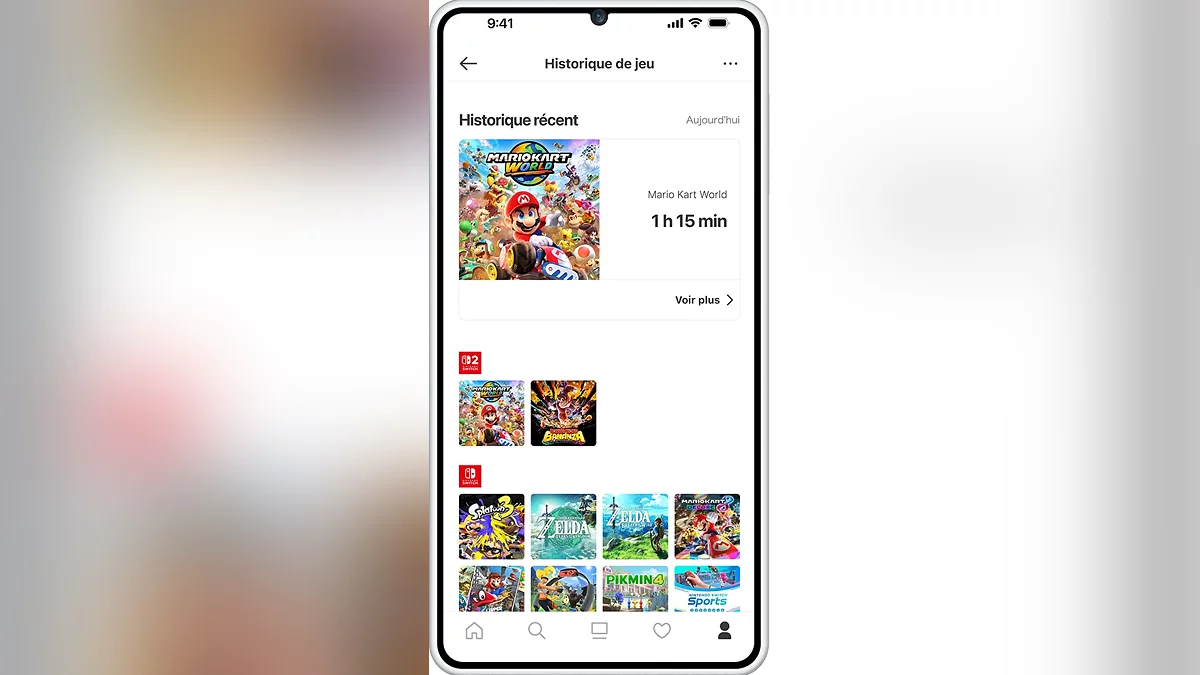 Однією з ключових функцій стала можливість роботи з особистою ігровою статистикою. Після авторизації додаток показує детальну історію ігор на Nintendo Switch. Для тих, хто давно користується продуктами компанії, є опція синхронізації з Nintendo Network ID, що дозволяє перенести в загальний профіль дані про час, проведений за іграми на консолях попередніх поколінь — Nintendo 3DS та Wii U. Активність фіксувалася до лютого 2020 року.