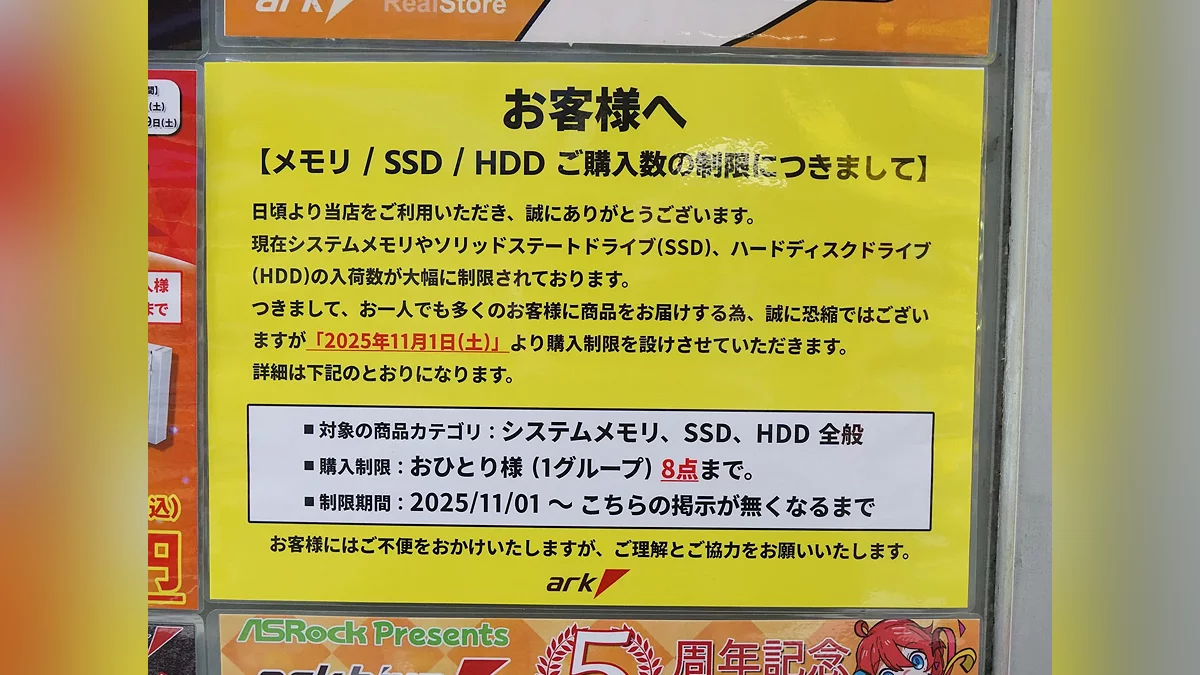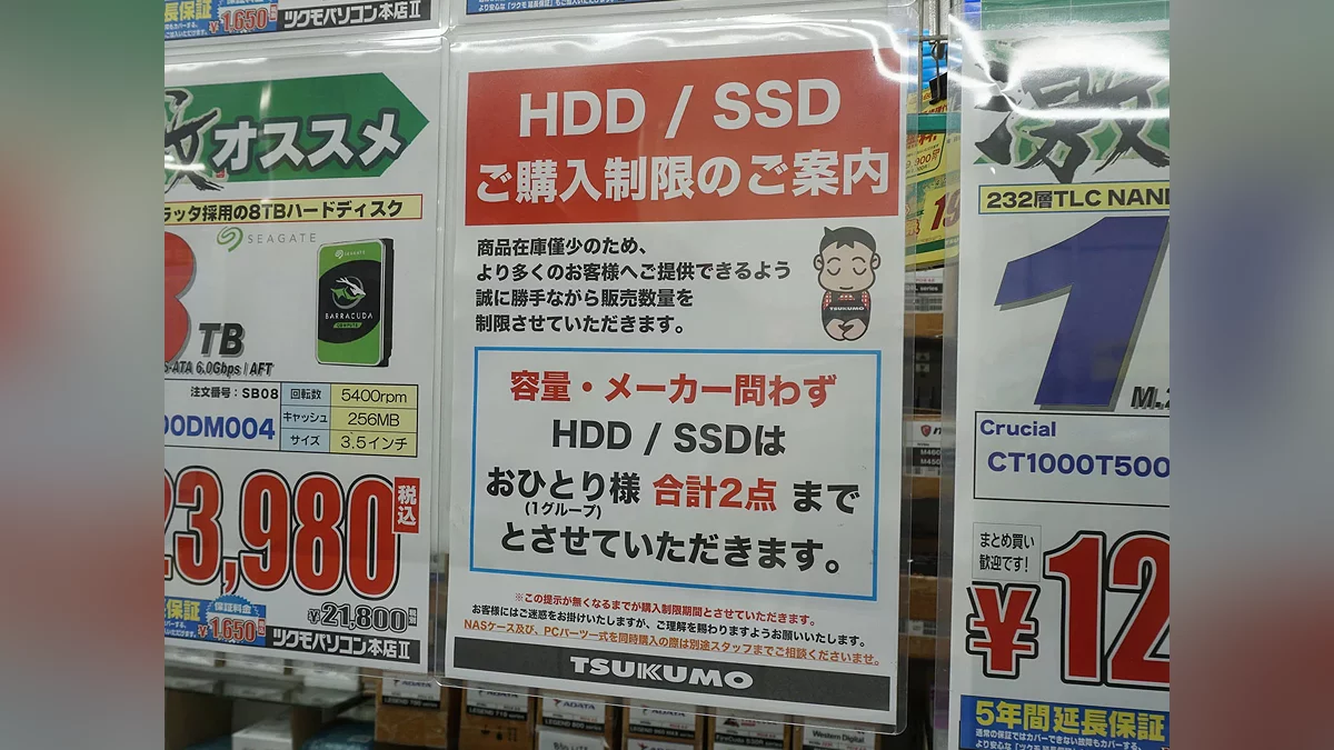 В японських магазинах електроніки покупці тепер не можуть придбати більше кількох SSD-накопичувачів або модулів оперативної пам'яті. Такі заходи роздрібні мережі змушені вживати на фоні стрімкого скорочення постачань і зростання цін на ці комплектуючі.