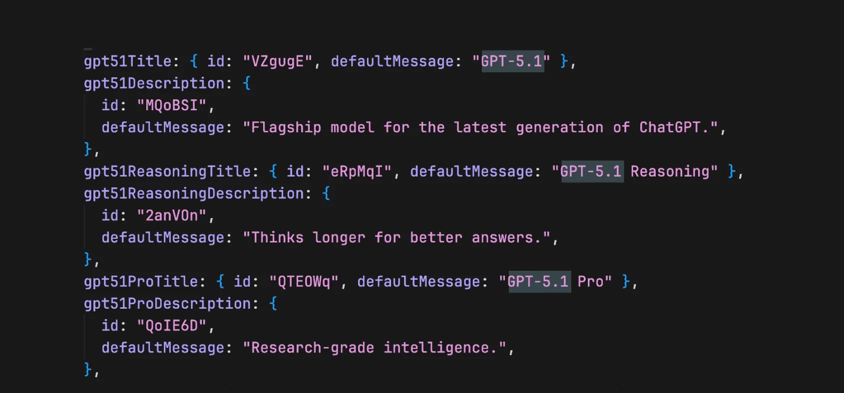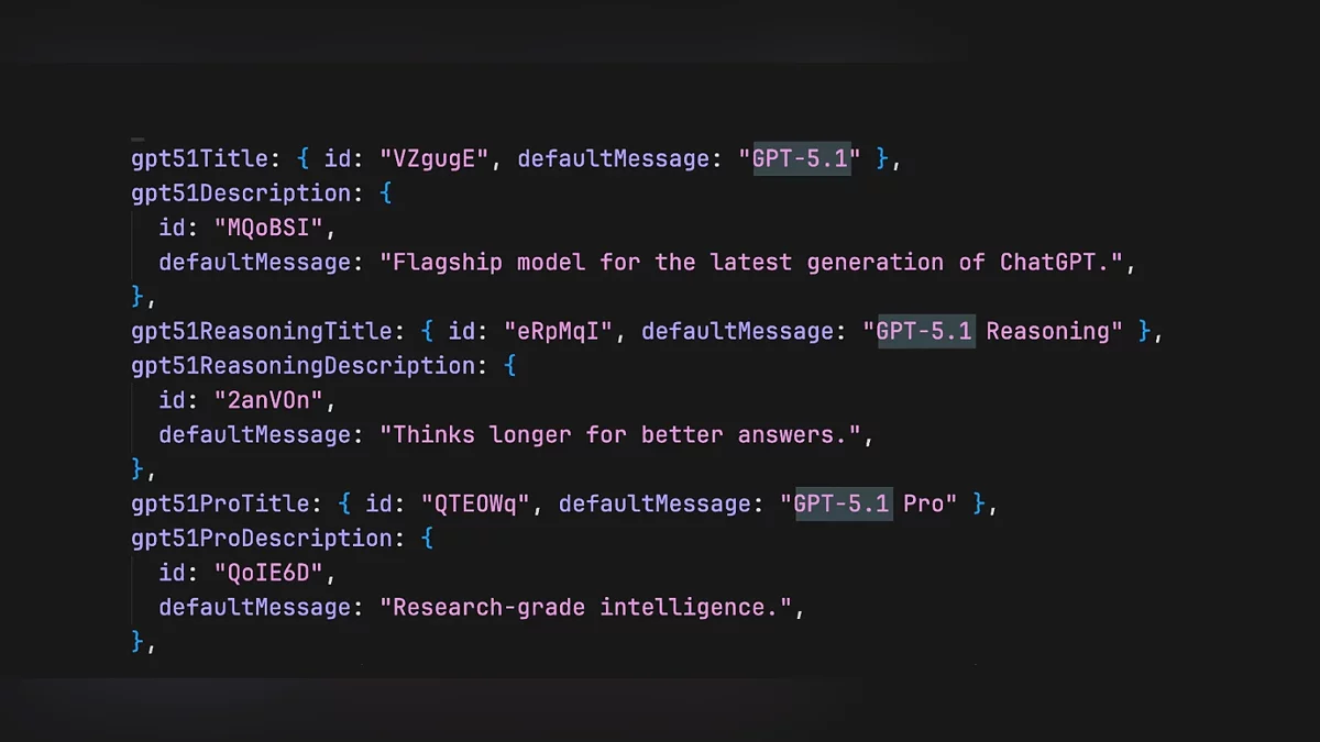 Згідно з даними, які витягли з javascript-коду, йдеться про три окремі моделі. Базова версія GPT-5.1 позиціонується як флагманське рішення для оновленого ChatGPT. Також очікується поява GPT-5.1 Reasoning, яка, судячи з опису, буде витрачати більше часу на обдумування для підвищення якості відповідей, і третя модель, GPT-5.1 Pro, заявлена як інструмент з «інтелектом дослідницького рівня».
