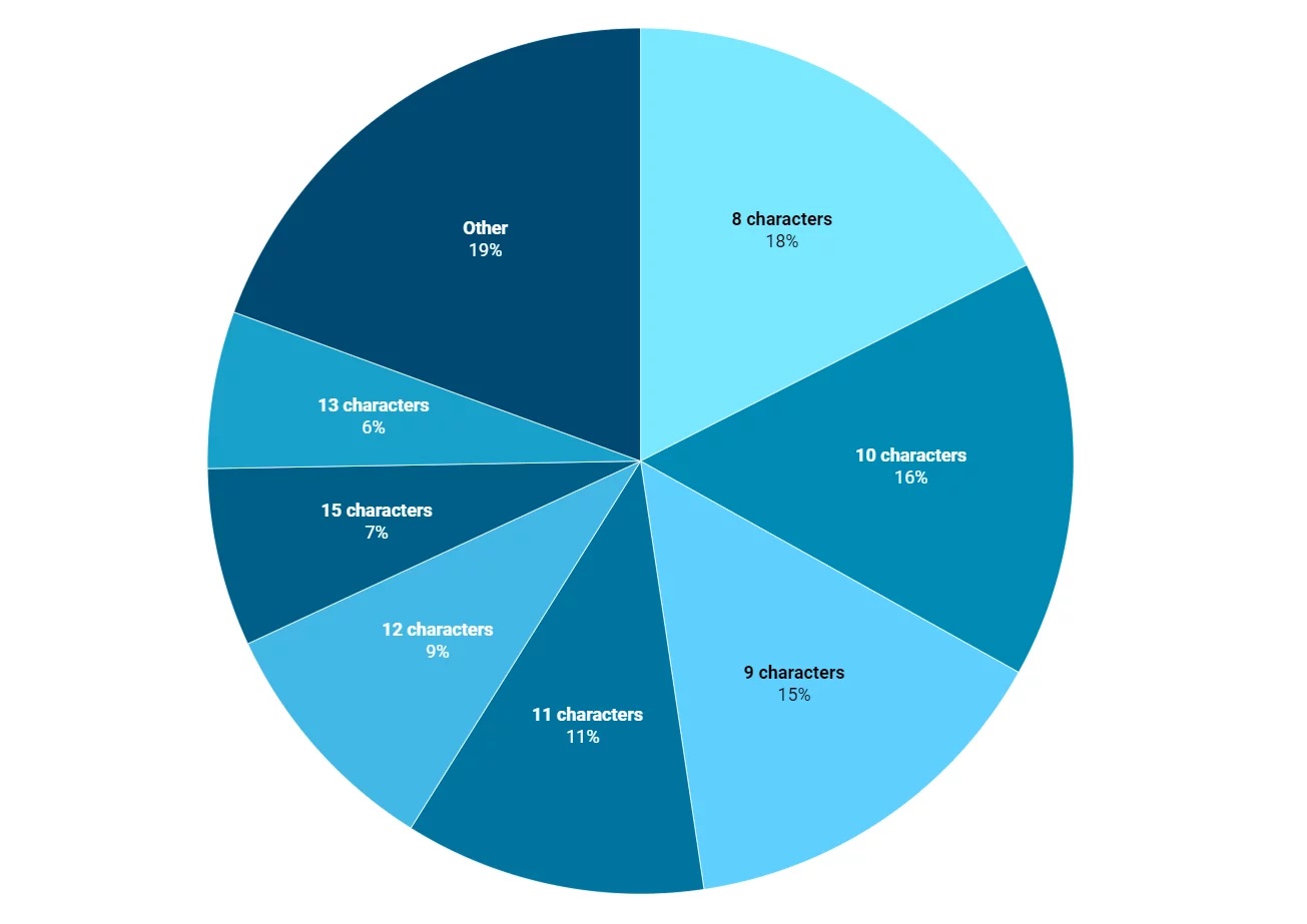 При цьому дослідження виявило кілька цікавих закономірностей, як виявилося, кожен четвертий популярний пароль складається тільки з цифр, а комбінація «123» зустрічається майже в 40% випадків. Багато користувачів, судячи з усього, надають перевагу не заморочуватися, використовуючи і зовсім один символ — «111111». Приблизно 66% проаналізованих комбінацій коротші за 12 символів, що значно спрощує їх злому, при цьому лише 3% користувачів використовують по-справжньому довгі паролі від 16 знаків.