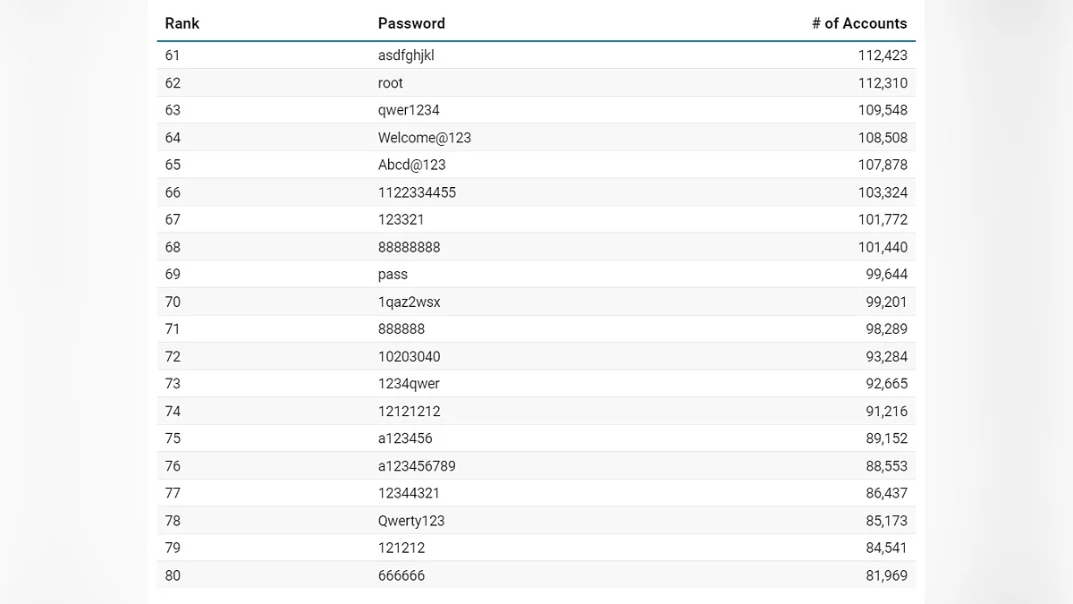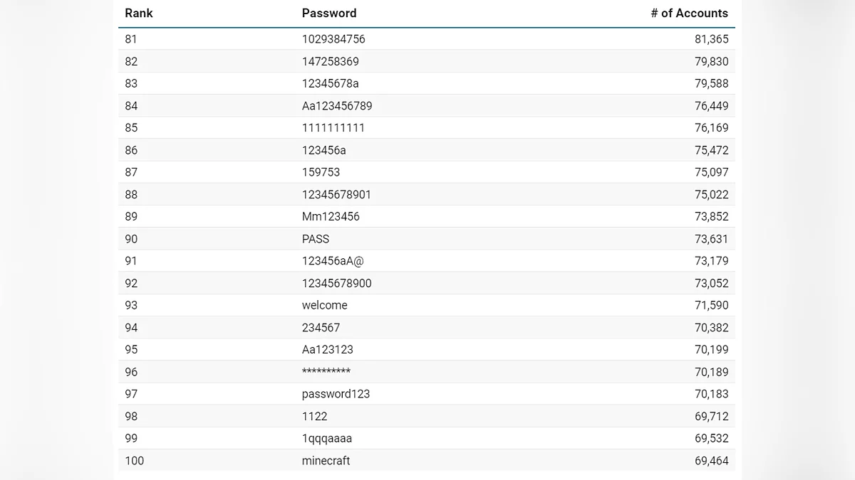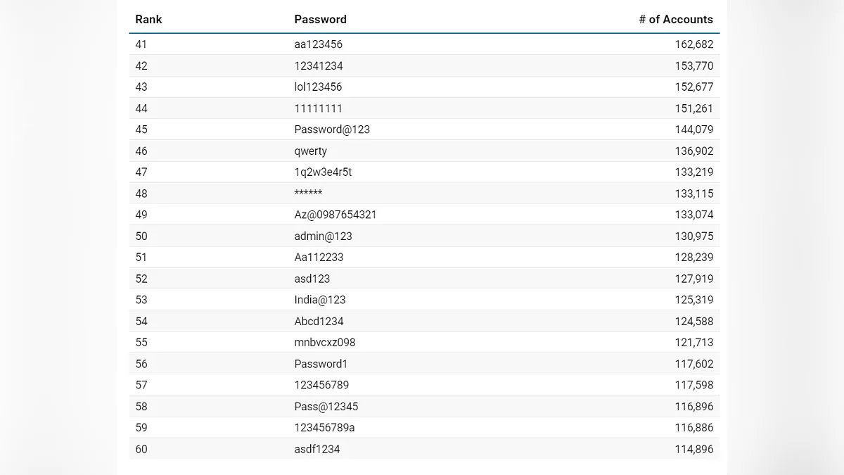 Люди часто вибирають те, що легко запам'ятати, не задумуючись про те, наскільки це ж просто підібрати, яскравий приклад — комбінація «Aa123456», яка намагається створити видимість складності, але давно відома зловмисникам. Серед тисяч варіантів мелькають і більш специфічні слова. Так, «minecraft» опинилася на 100-й позиції, а «India@123» виділилася як регіонально забарвлений, але так само передбачуваний варіант.