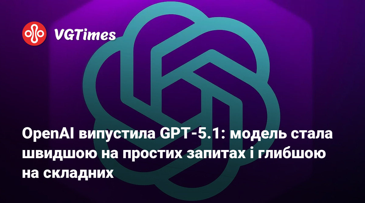 OpenAI випустила GPT-5.1: модель стала швидшою на простих запитах і глибшою на складних