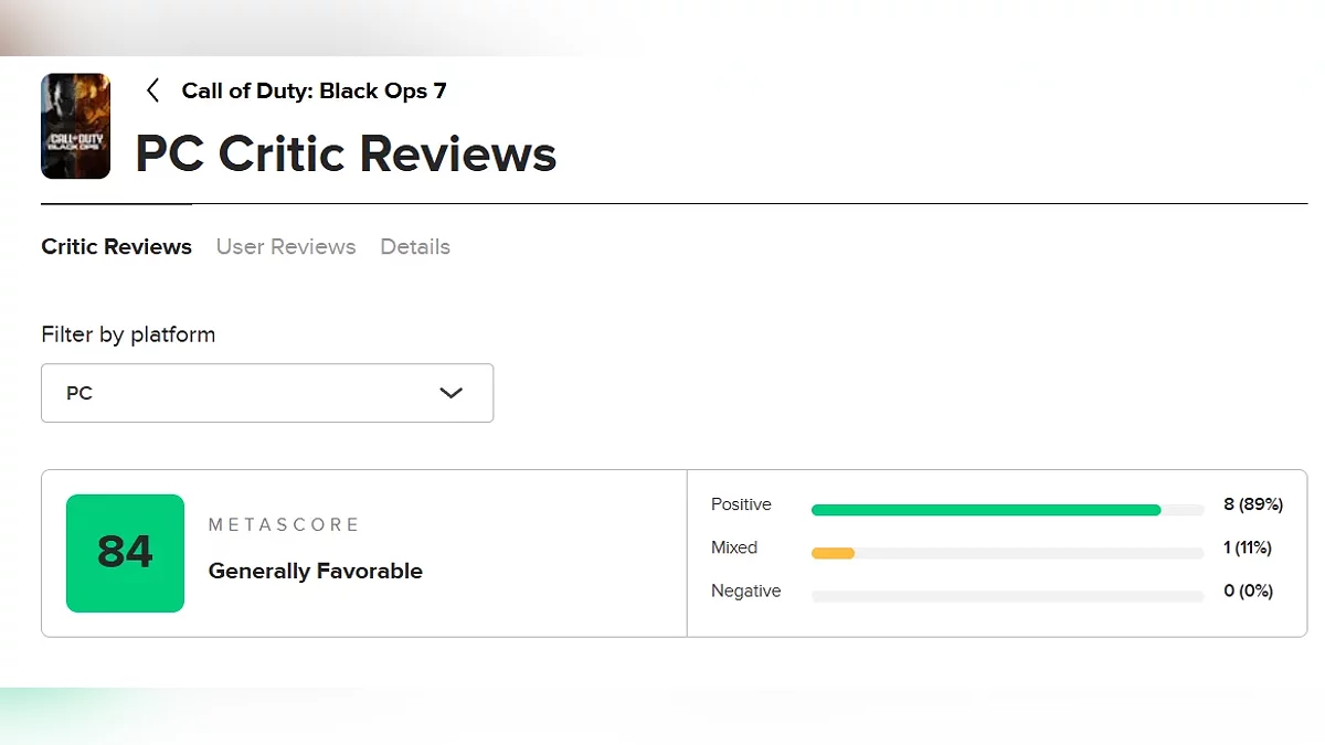 Множество популярних ігрових видань вже також виставили оцінки вийшовшому сьогодні шутеру Call of Duty: Black Ops 7. На відміну від гравців, критики в основному позитивно оцінили нову гру Activision — на Metacritic рейтинг становить 84 бали на момент написання новини.