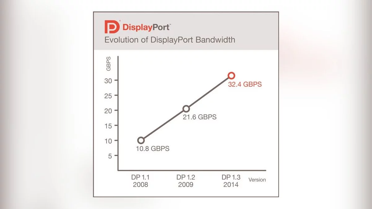 Первое, что надо знать о DisplayPort 1.3 — это увеличенная «ширина» канала с 25,9 Гбит/с до 32,4 Гбит/с, что в свою очередь позволит подключать мониторы с впечатляющим разрешением в 5120×2880 пикселей. Теперь главное, чтобы производители графических ускорителей успевали угнаться за неумолимым технологическим прогрессом.