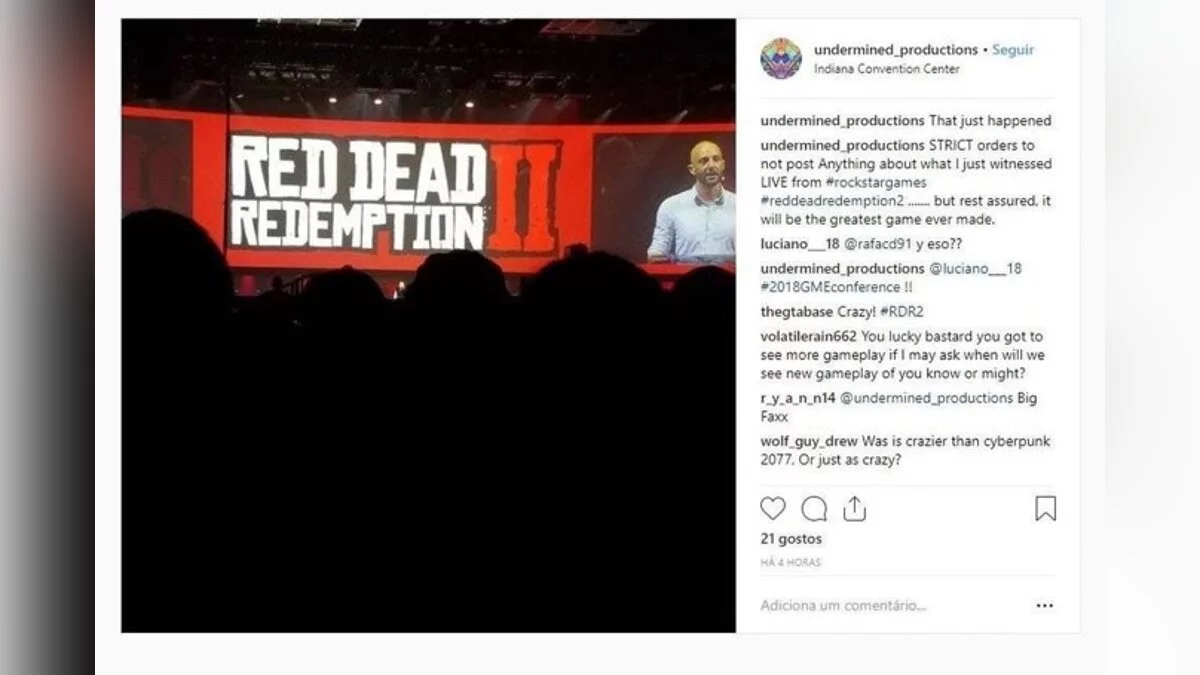 Пользователь под ником undermined_productions стал единственным посетителем конференции, который смог опубликовать в Instagram одну из фотографий со сцены во время выступления Rockstar Games. Он написал о том, что Red Dead Redemption 2 станет одной из величайших игр в истории, но в комментариях нашлось очень много геймеров, не разделивших мнение автора.