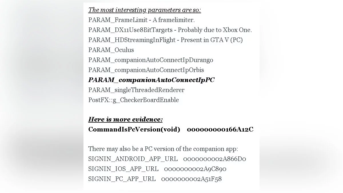 Некоторые фанаты считают, что разработчики могли просто скопировать код из похожего приложения для GTA 5, а те строчки, которые относятся к PC-версии, убирать не стали.