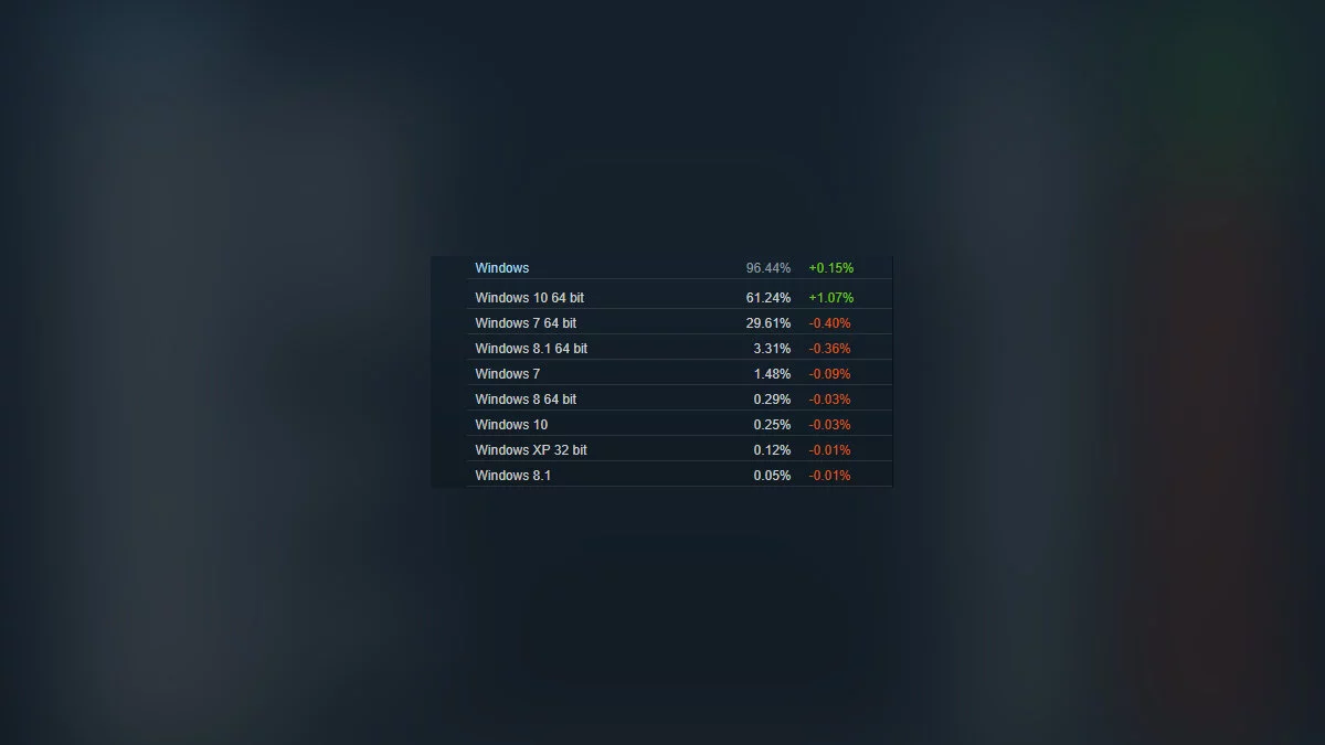 Из операционных систем Windows 10 продолжает укреплять свои позиции. Она установлена у 61,25 % игроков (на 1,07 % больше, чем в прошлом месяце).