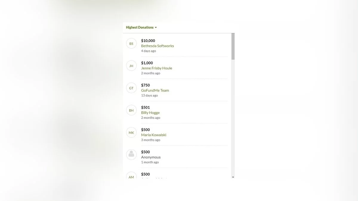 Средства были пожертвованы через благотворительный ресурс GoFundMe. На скриншоте можно увидеть все пожертвования, которые сделали небезразличные к Уэсу люди.