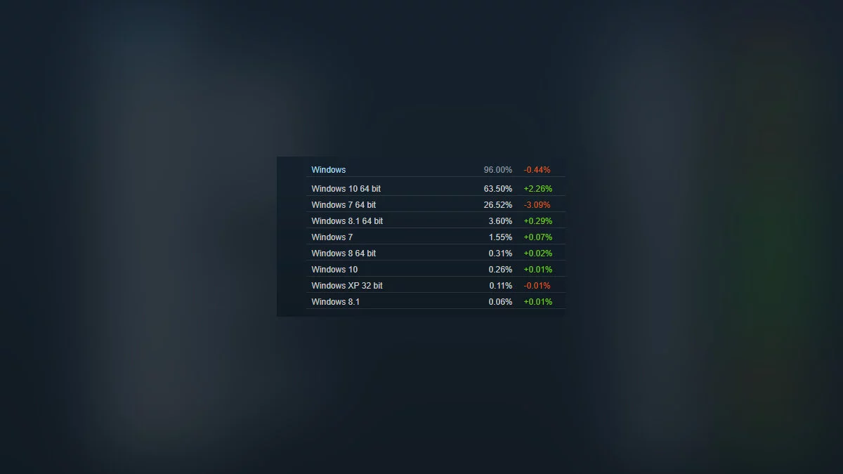 Что касается ОС, Windows 10 стала популярнее на 2,26 %. Теперь ее используют 63,50 % всех пользователей Steam. Windows 7 (x64) в свою очередь продолжает сдавать позиции — 26,52 % (на 3,09 % меньше, чем в октябре).