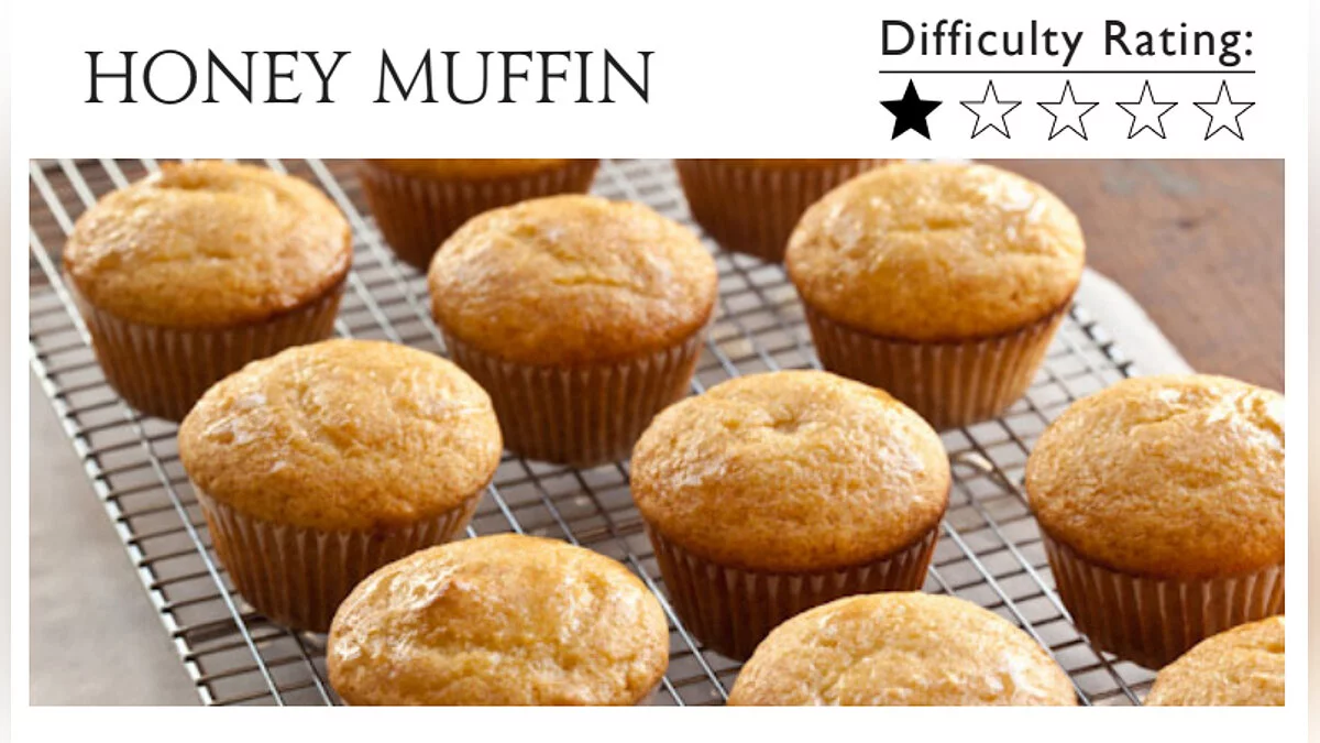 Каждый рецепт содержит в себе информацию о сложности приготовления этого блюда и список необходимых ингредиентов. К примеру, есть медовые маффины, для приготовления которых достаточно 20 минут и продуктов, продающихся в любом супермаркете.
