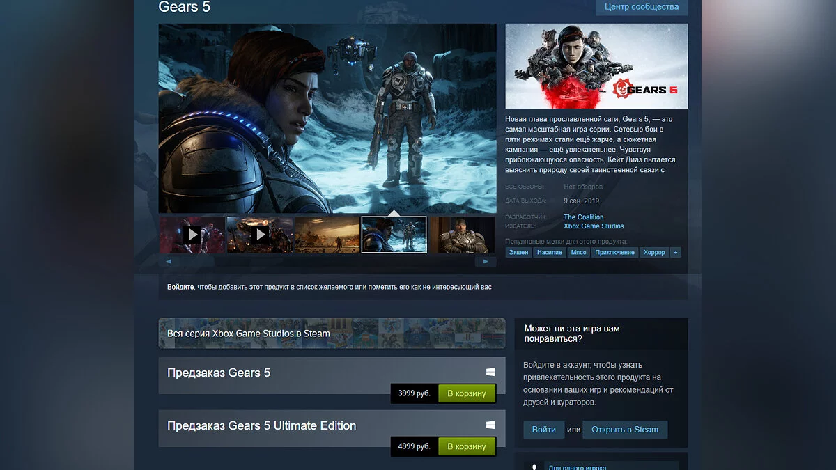 Стоимость Gears 5 в Steam составляет 3999 рублей. Это дороже, чем, к примеру, Cyberpunk 2077 (1999 рублей) и The Witcher 3: Wild Hunt (1199 рублей) вместе взятые.