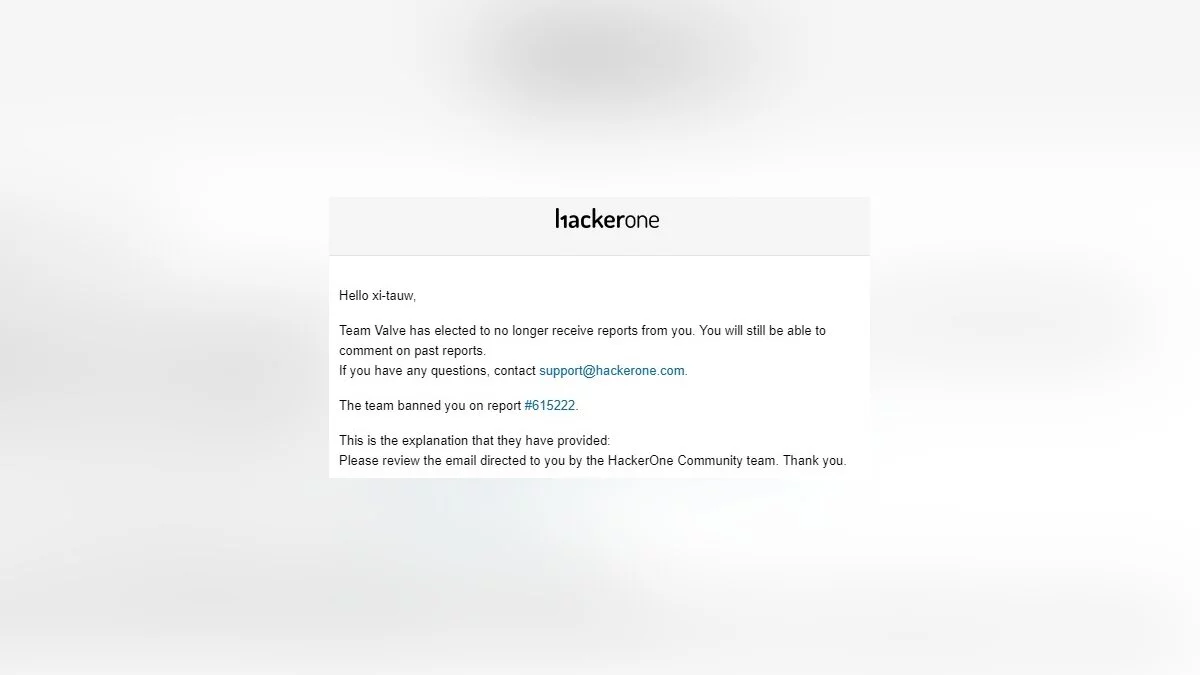 Дело в том, что Valve забанила исследователя на сервисе приёма сообщений об уязвимостях из-за предыдущей находки. Её, к слову, компания исправила, хотя фикс тут же сумели обойти.
