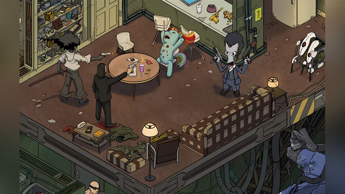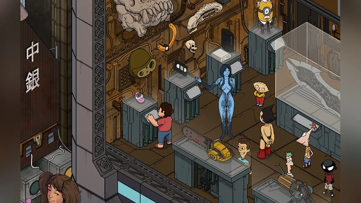 На постере изображены свыше 100 известных персонажей, включая героев «Футурамы», Witcher 3, Doom, Fallout, Half-Life 2, Skyrim и других популярных игр, фильмов и мультиков.