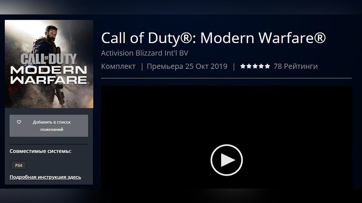 В российской версии PS Store вновь появилась страница COD: Modern Warfare, которую ранее удалили. Купить её пока нельзя.