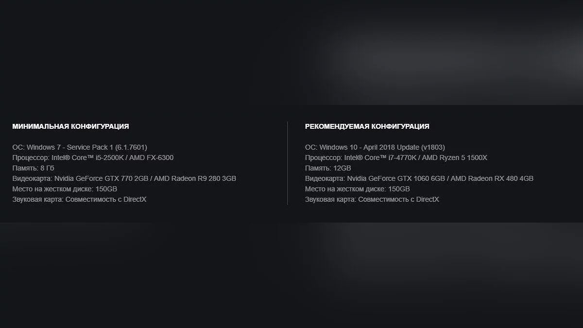- Видеокарта: GeForce GTX 1060 6 ГБ или AMD Radeon RX 480 4 ГБ;