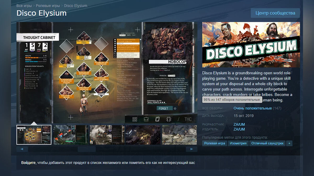 На ПК вышла Disco Elysium — RPG с открытым миром, которую уже называют шедевром