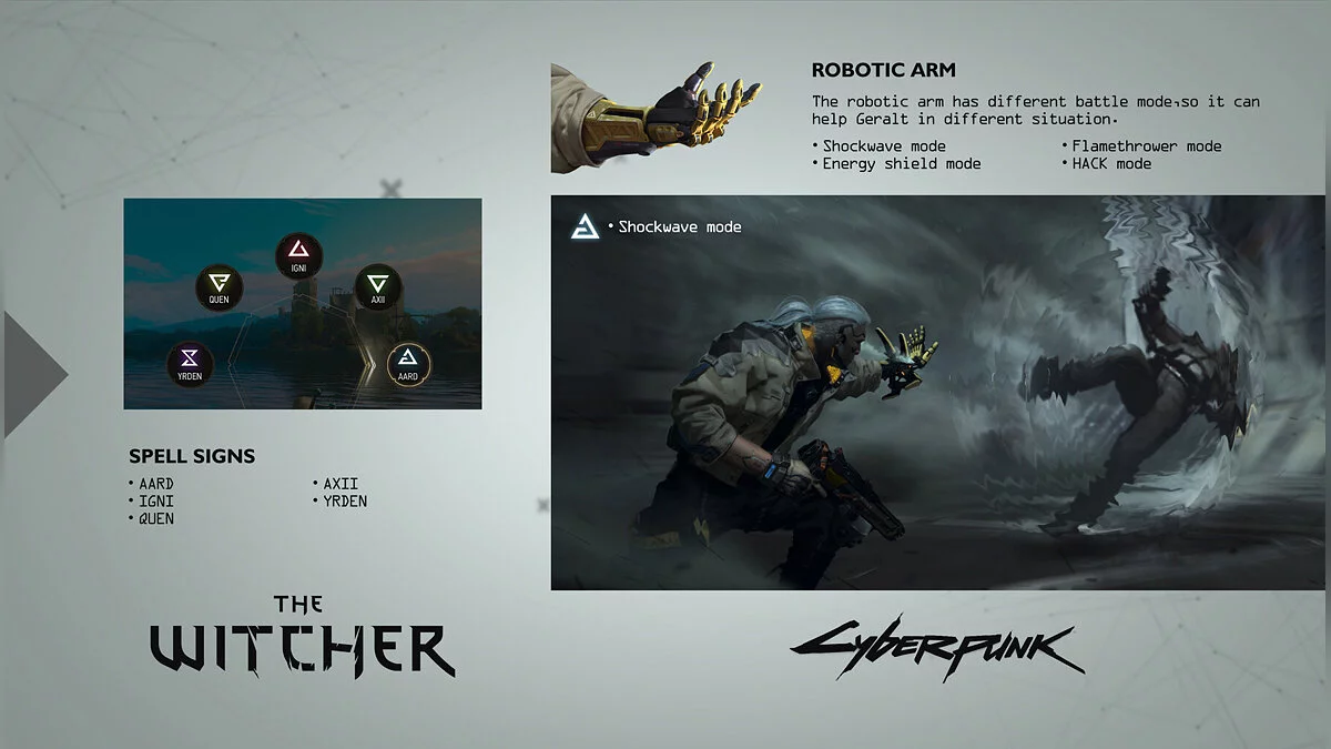 За магические знаки знаки теперь отвечают протезы. Игни заменили огнеметом, а местный Аард пускает ударную волну.