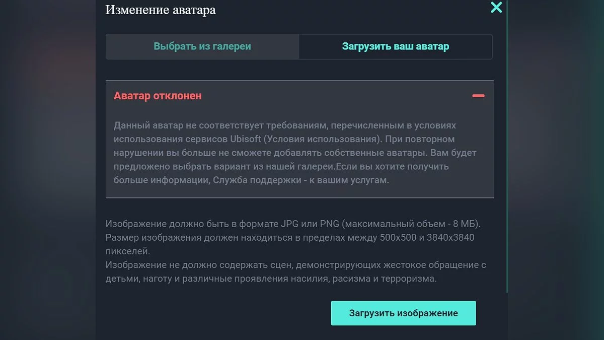 В поддержке Ubisoft написали следующее: «Данный аватар не соответствует требованиям, перечисленным в условиях использования сервисов Ubisoft. При повторном нарушении вы больше не сможете добавлять свои аватары».