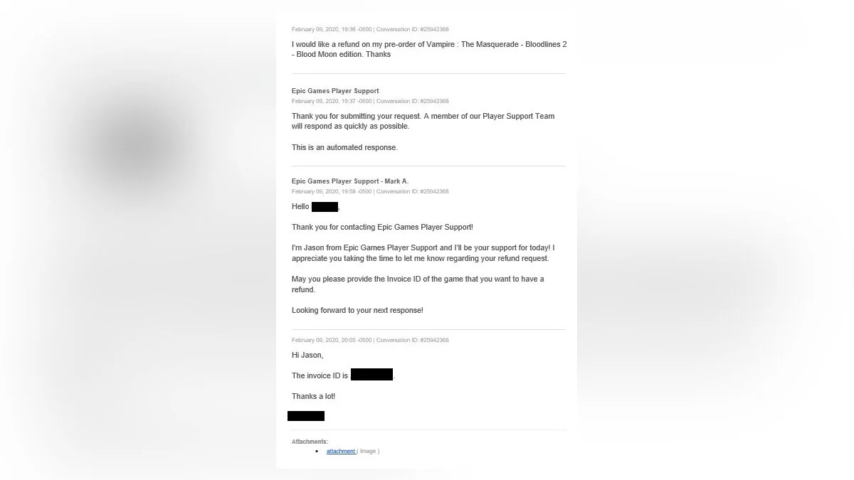 Вероятнее всего, в поддержке Epic Games Store просто ошиблись и дали стандартизированный ответ на запрос, не обратив внимания на то, что Bloodlines 2 еще не вышла. С перепиской можно ознакомиться ниже.